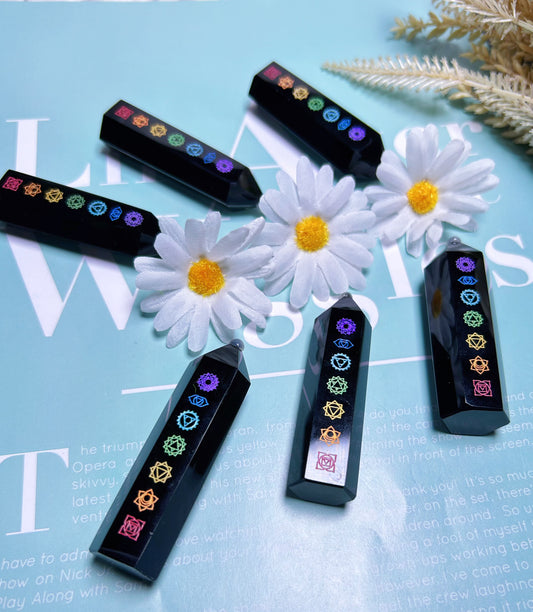 Black Obsidian Chakra Tower Point Natural Polished and Etched | Metaphysical Spiritual Home Decor