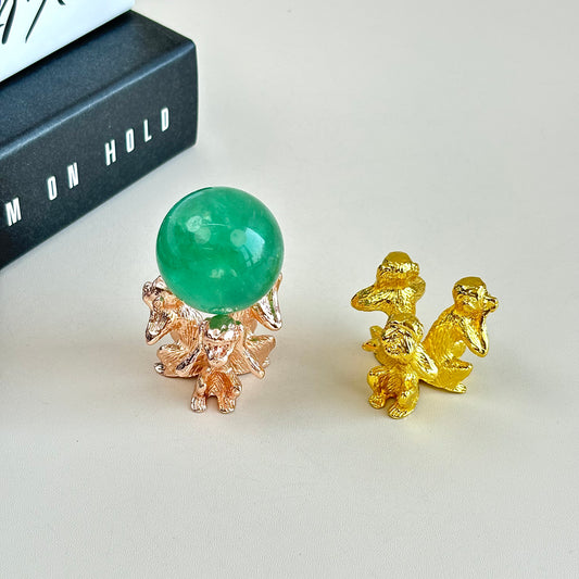 $5/1 pieza Base de cristal de tres monos dorado brillante, Base de cristal de tres monos de oro rosa brillante, base de esfera de cristal.